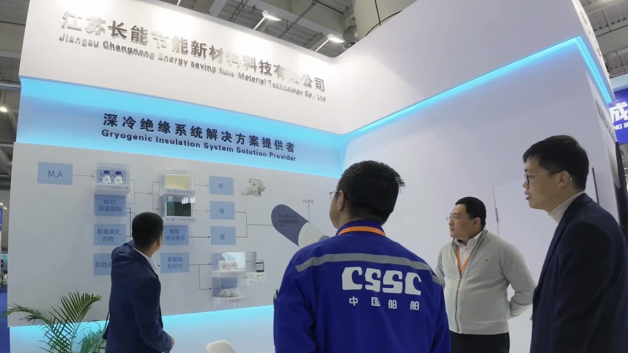 長能科技展示了多項技術亮點,其中包括超低溫罐體保溫工藝、GRP管殼工藝、大泡塊及深冷膠水等多項創新技術。特別是超低溫罐體保溫材料與解決方案,憑借其卓越的保溫性能,能夠應對-196℃的極端溫度,吸引了眾多觀眾的關注。